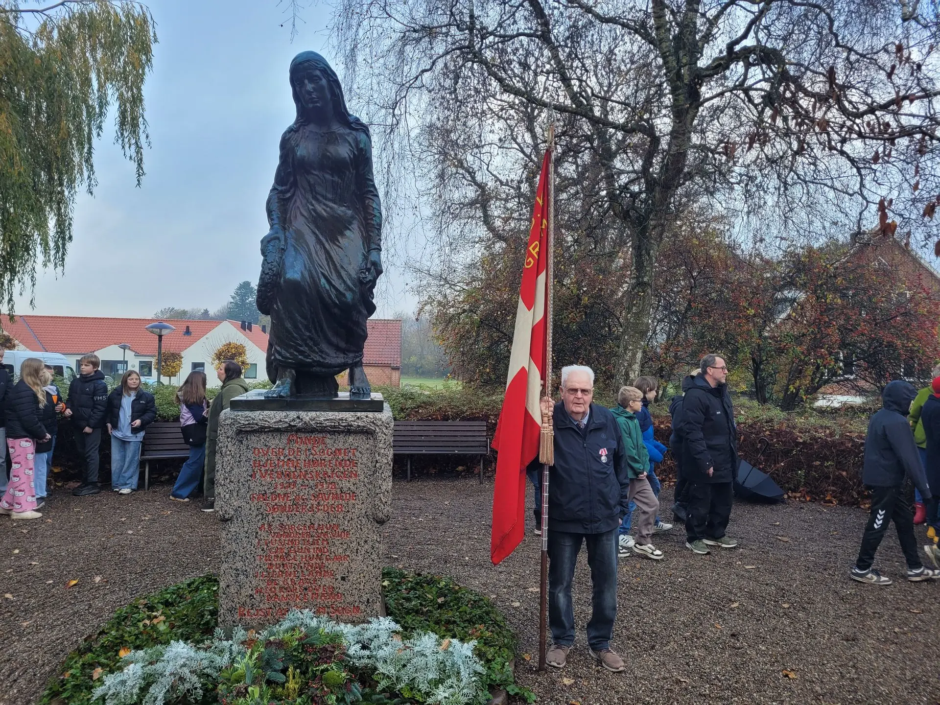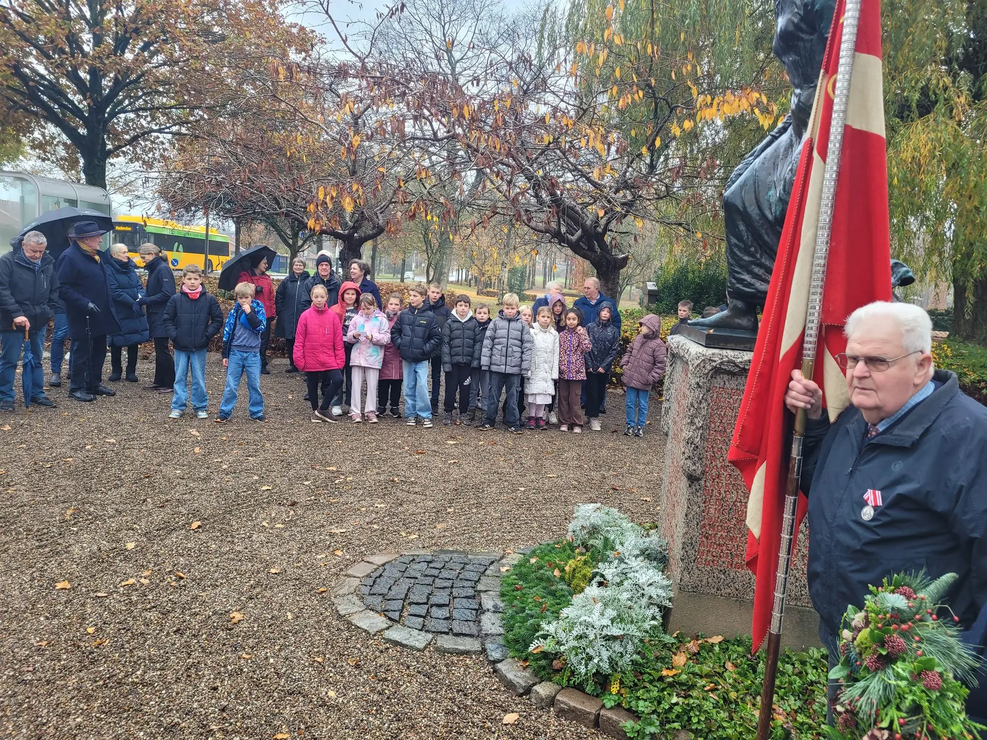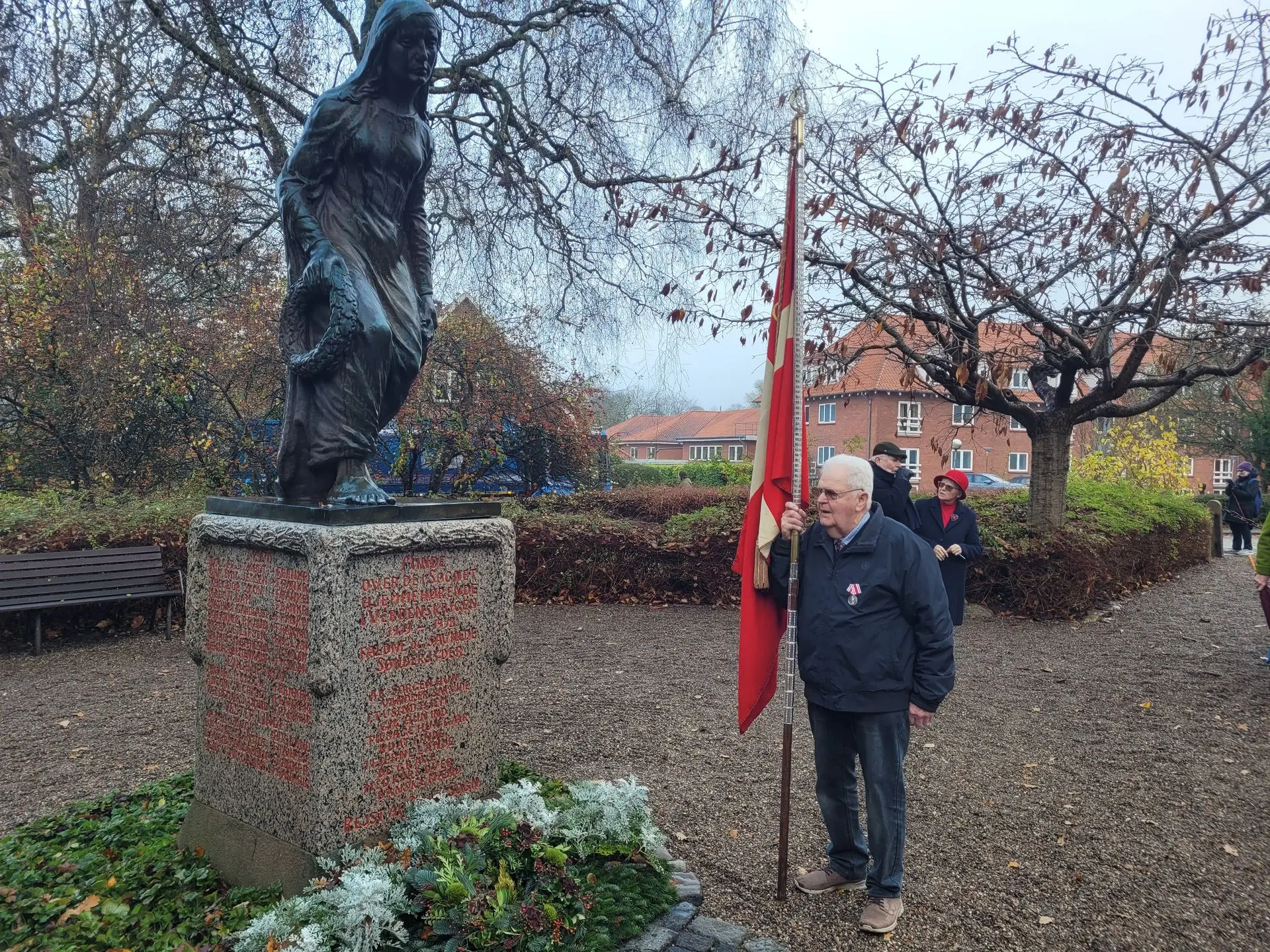 Også i år mødte knap 100 mennesker op til kransenedlæggelse, flaghejsning og fællessang. Johannes Gjesing fortæller: