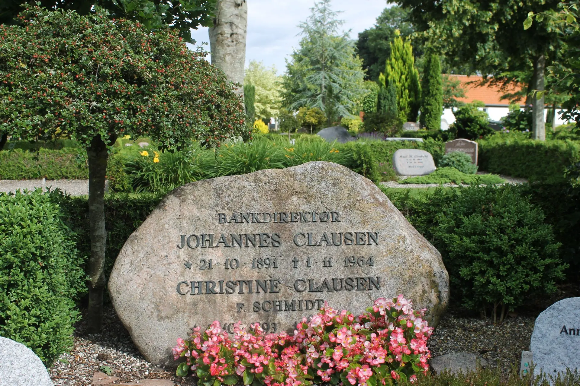 Christine blev i 1919 gift med bankdirektør Johannes Clausen. Det var i nærheden af deres gravsted på Gram Kirkegård, at man fandt de forsvundne mindesten.