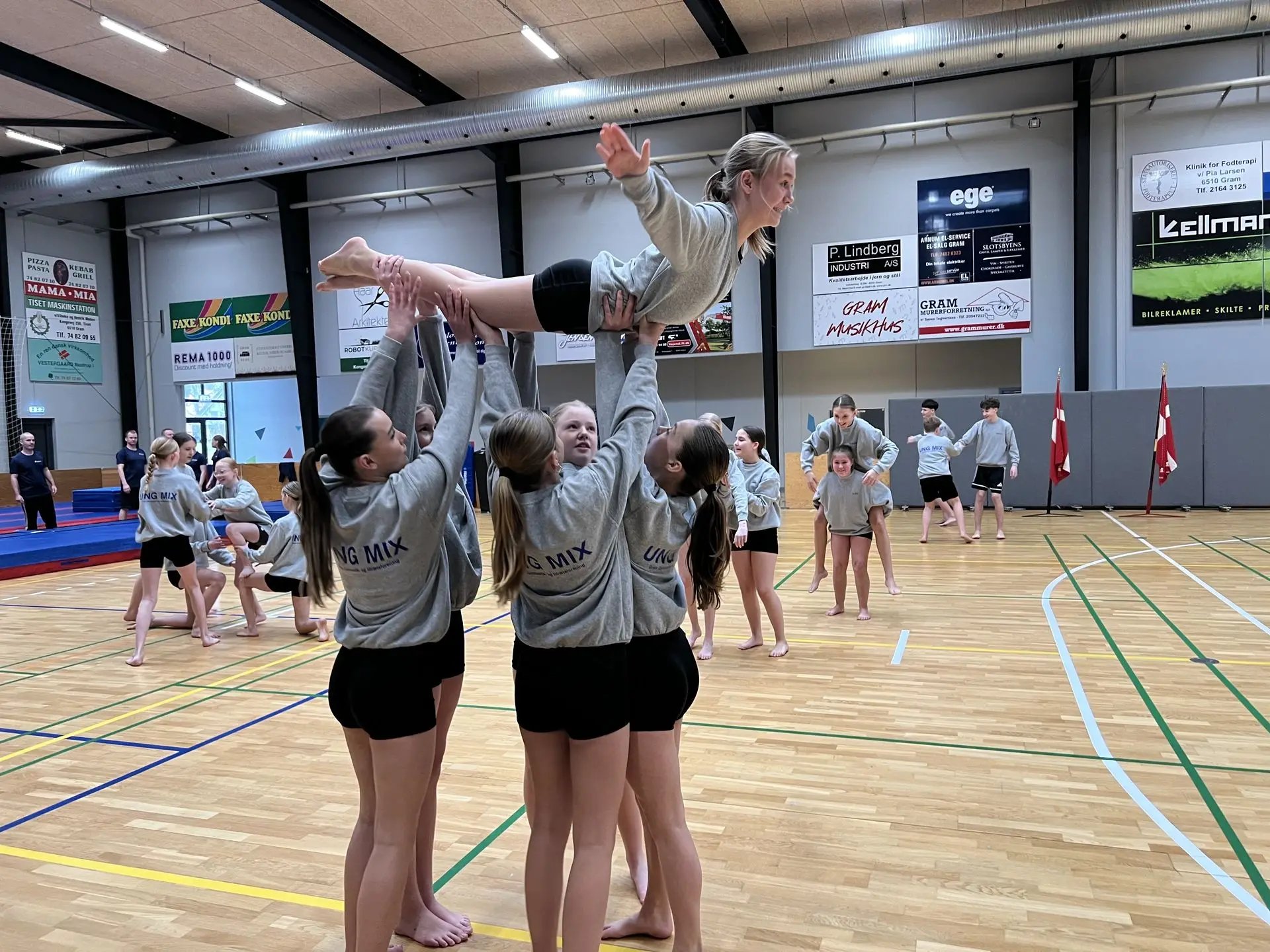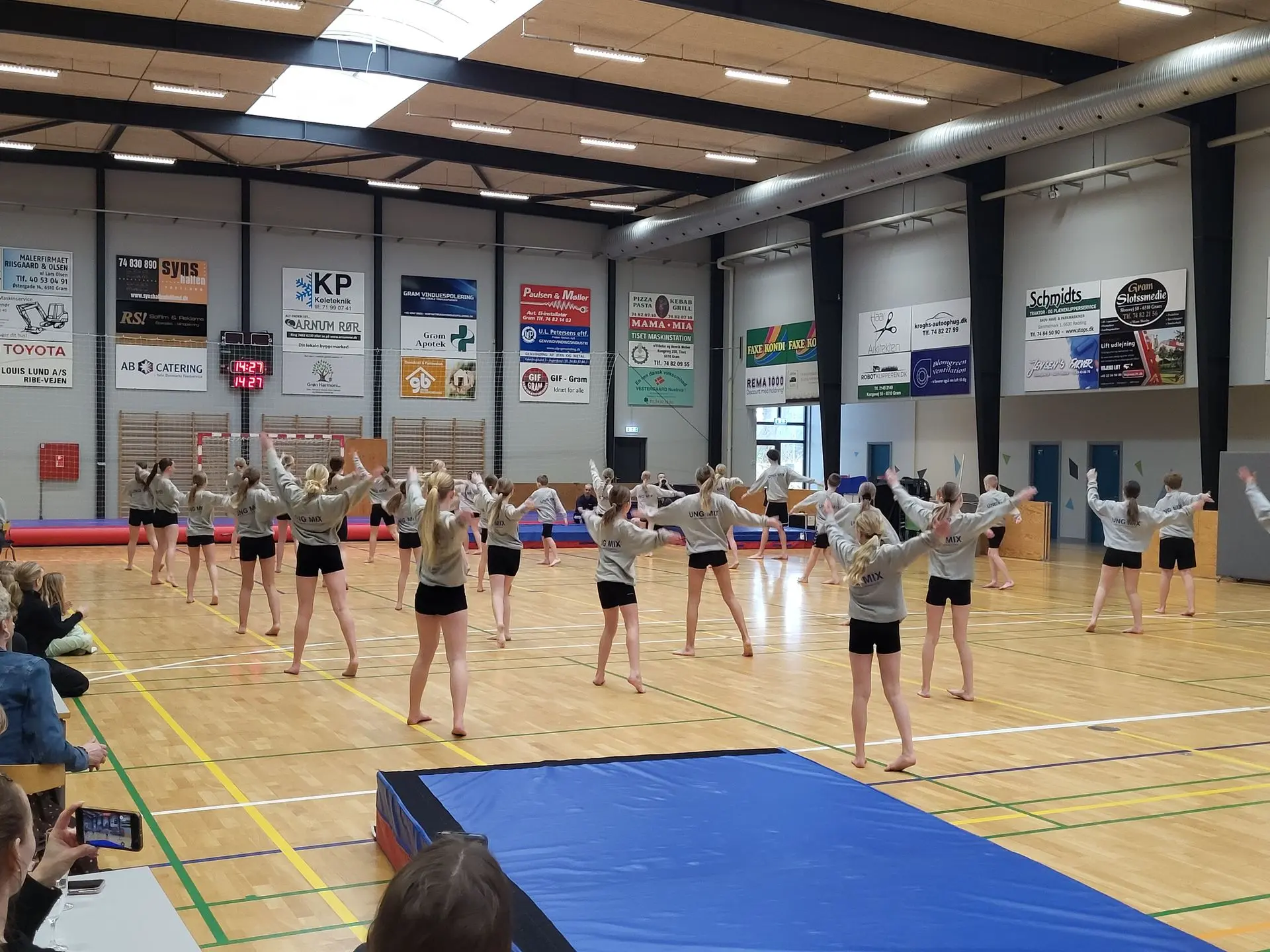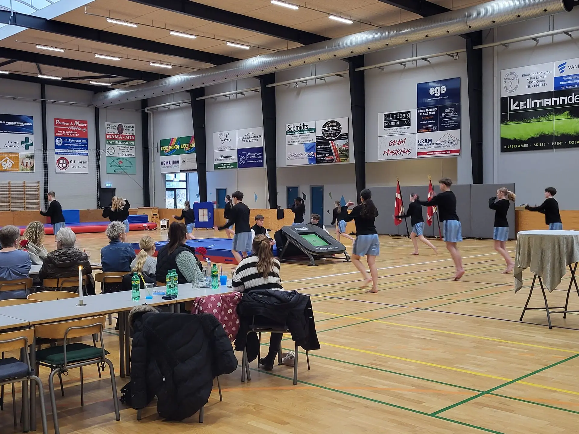 Derefter blev der afholdt en højtidelig ceremoni i anledning af indvielsen af foreningens nye fane. Efter fædrelandssangen gik to gymnastikhold på gulvet til et brag af en opvisning med smagsprøver på holdenes færdigheder, både inden for spring og rytme. Først var det Juniormix, og derefter var det Ungmix, som gjorde dagen ekstra festlig.