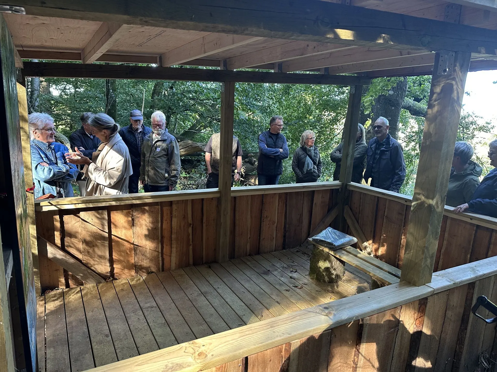 Langt inde i Slotsparken, der hvor den lange sti går over i skoven (lunden), var der kl. 14.30 indvielse af det nye fuglekiggertårn. Et unikt område, hvor ca. halvdelen af Danmarks knap 400 fuglearter kan opleves. Vision Gram står bag det fine initiativ.