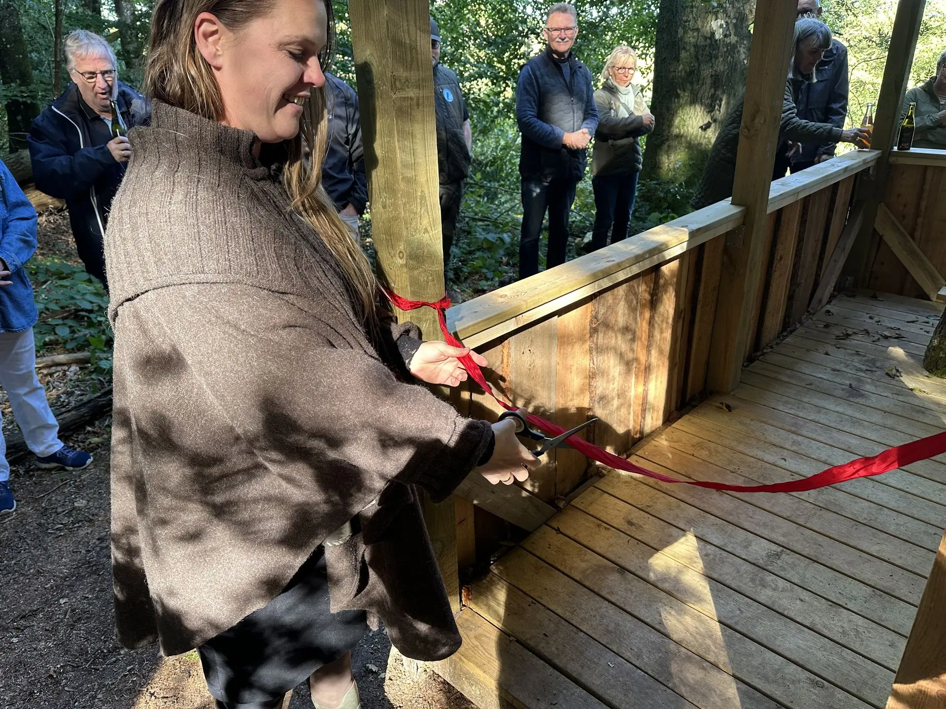 “Børnene og jeg opholder os ofte herude i naturen, og så fik jeg ideen til et fuglekiggerhus. Jeg luftede ideerne for Karl Gunnar Gregersen, der straks var med på mine tanker. Derefter fremlagde vi idéen for ’Vision Gram’, der bakkede op, og her står vi i dag,” fortalte en meget tilfreds og stolt Rikke Friis, der også fik æren af at klippe den røde snor til fuglekiggerhuset.