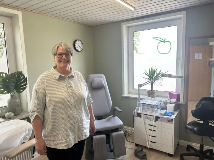 Jeg har min klinik i Brørup, men er flere gange i ugen også i klinikken i Gram. Her ordner jeg fodvorter ved frysning og tørring, fjerner ligtorne, påfører neglelak, farvning af vipper og bryn. Desuden vokser jeg ben, så de kan blive gjort sommerklar, fortæller en smilende Cathrin, der har både online- og telefonisk booking til sine behandlinger, der varierer i tid.