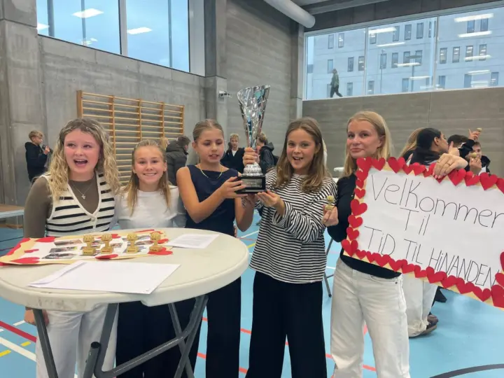 Efter en lang votering blev vinderen offentliggjort – og jubelen ville ingen ende tage, da det stod klart, at Mille, Mie, Maja, Jessie og Ellen skulle repræsentere Gram Skole ved den kommunale konkurrence.