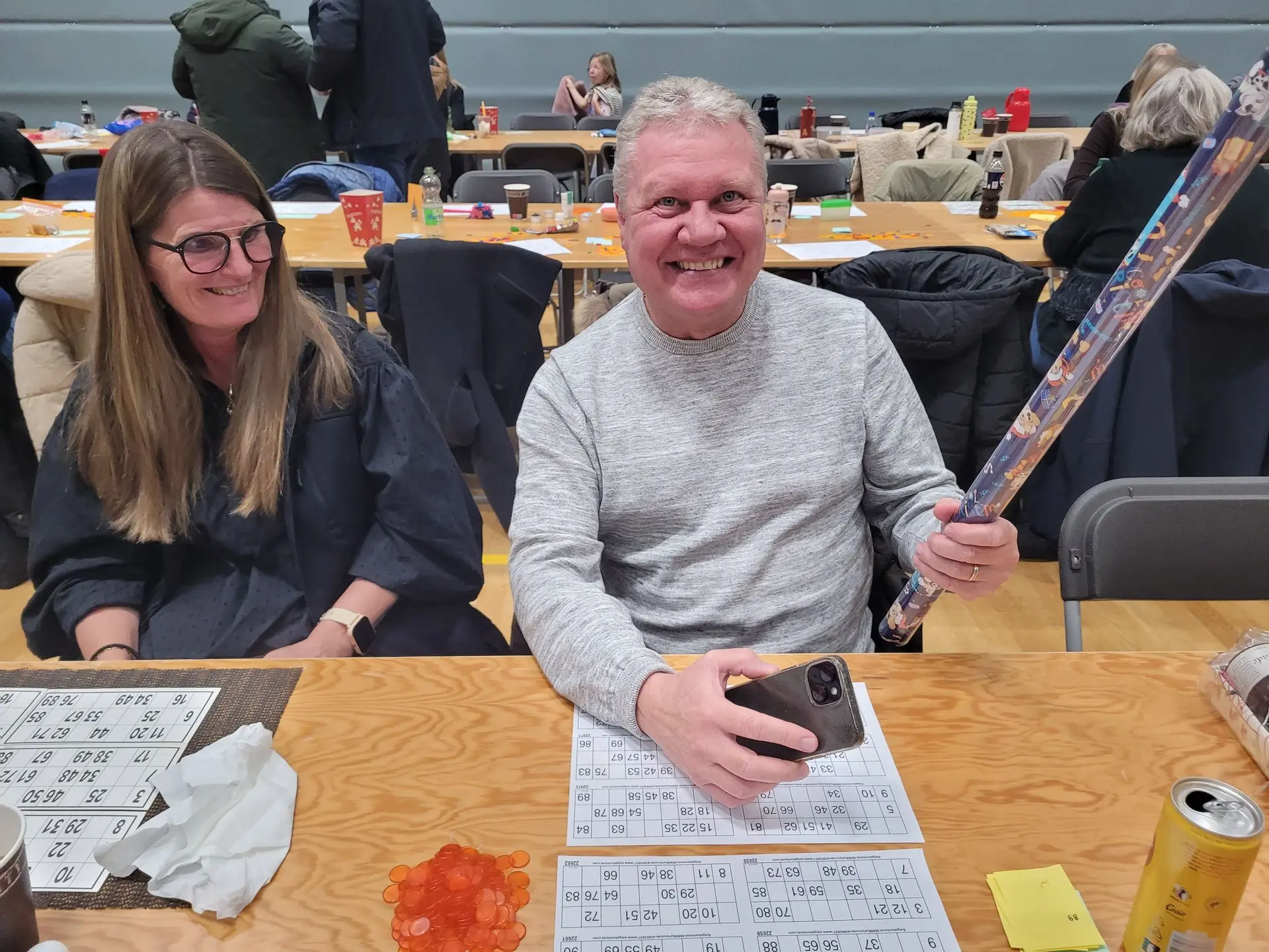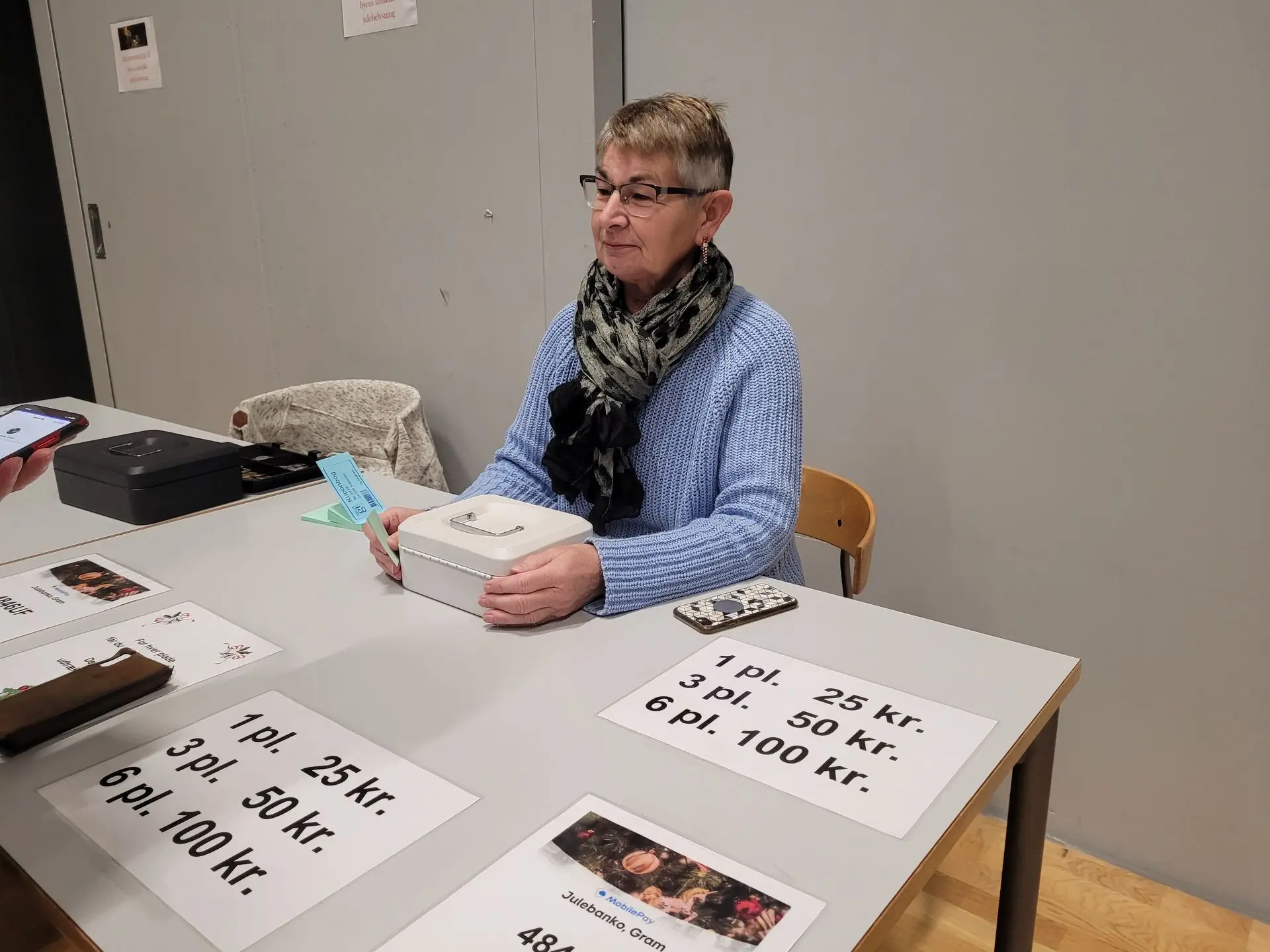 Ulla Wyrzykowski, som er med til at arrangere bankospillet, var da også i strålende humør. Hun fortæller: