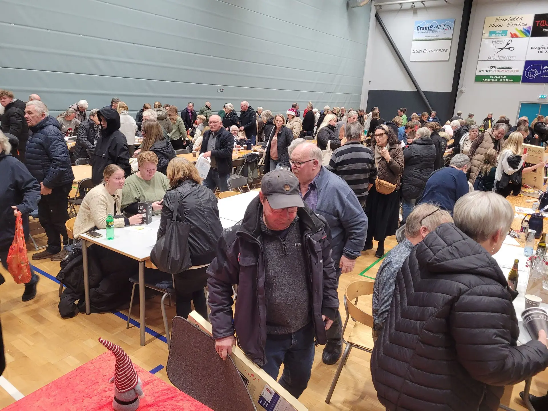 Folk kom strømmende til i god tid. For julebanko i Gram er efterhånden blevet en tradition – og hvert år kommer der flere og flere til.