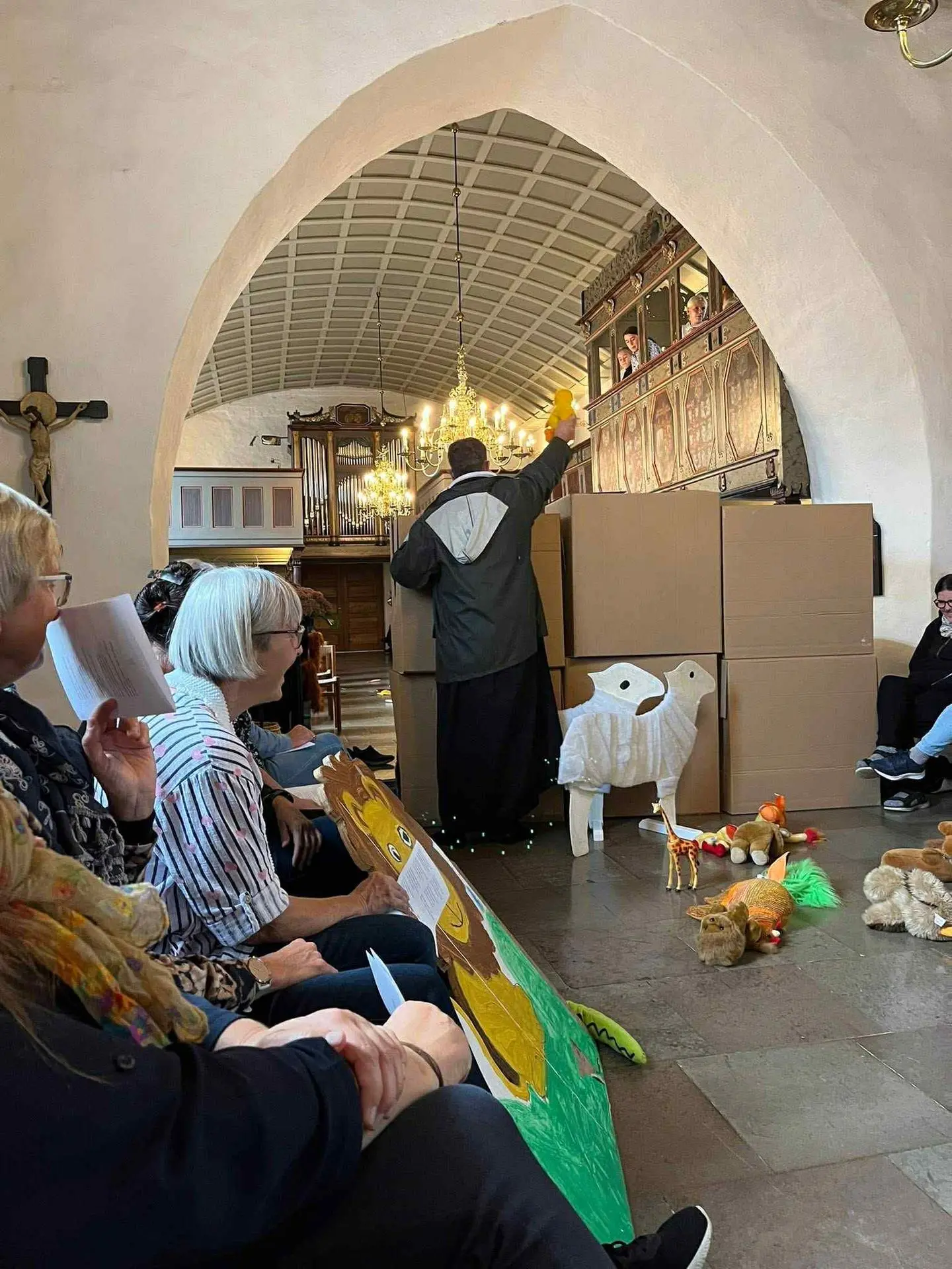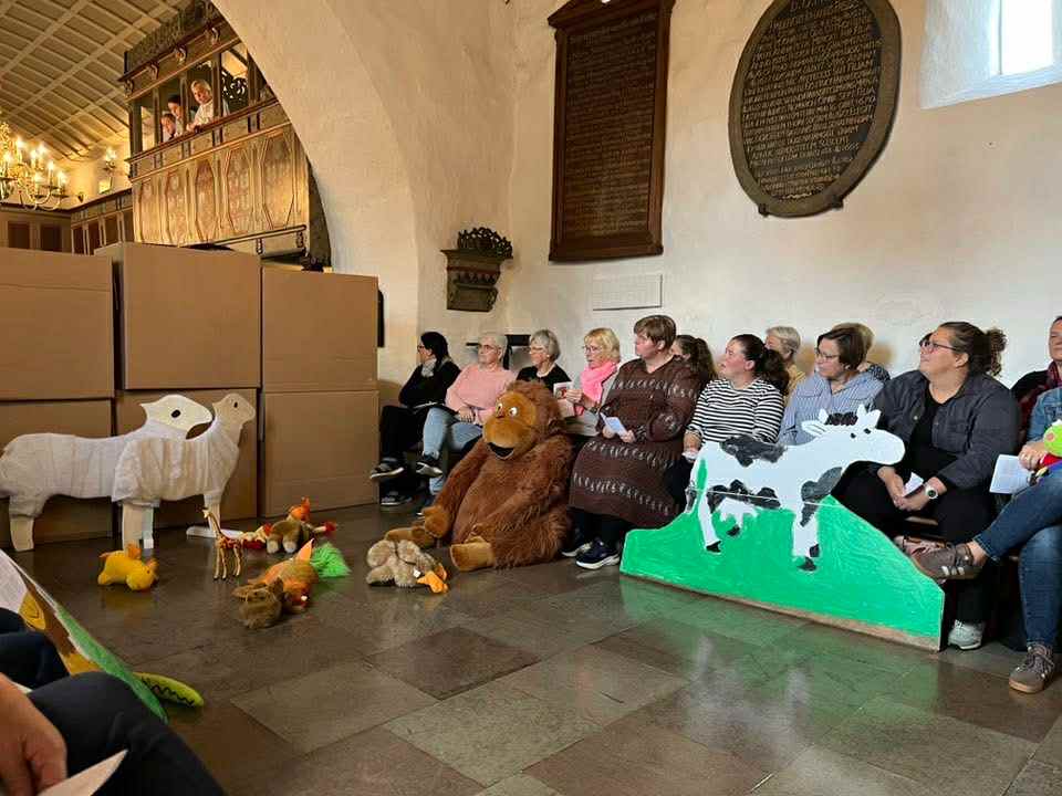 Gram Kirke inviterede tirsdag eftermiddag til en børne- og familiegudstjeneste om Noas ark – efterfulgt af spaghetti i sognehuset.