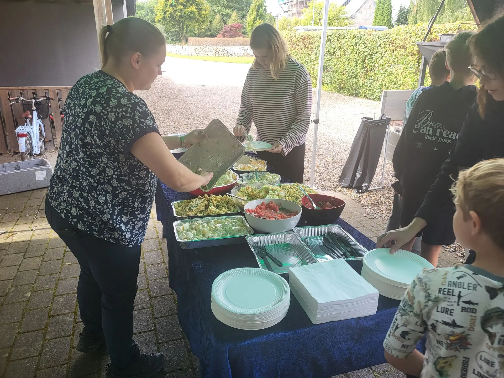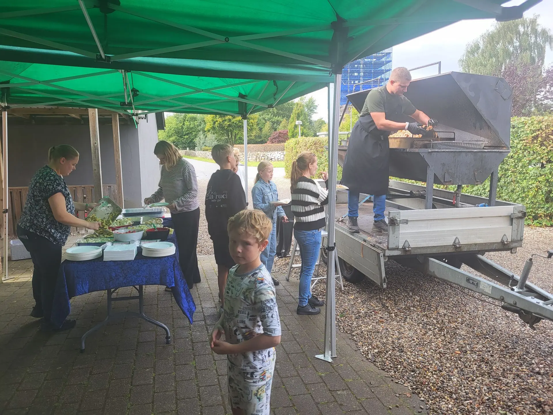 Omkring 120 besøgende kiggede indenfor denne eftermiddag, og alle skulle forbi og se det flotte nye skolekøkken, inden de gik ud til grillen, hvor der blev serveret helstegt pattegris. Det lækre tilbehør havde eleverne selv lavet i deres nye køkken, og det var blevet til hele tre forskellige salater.
