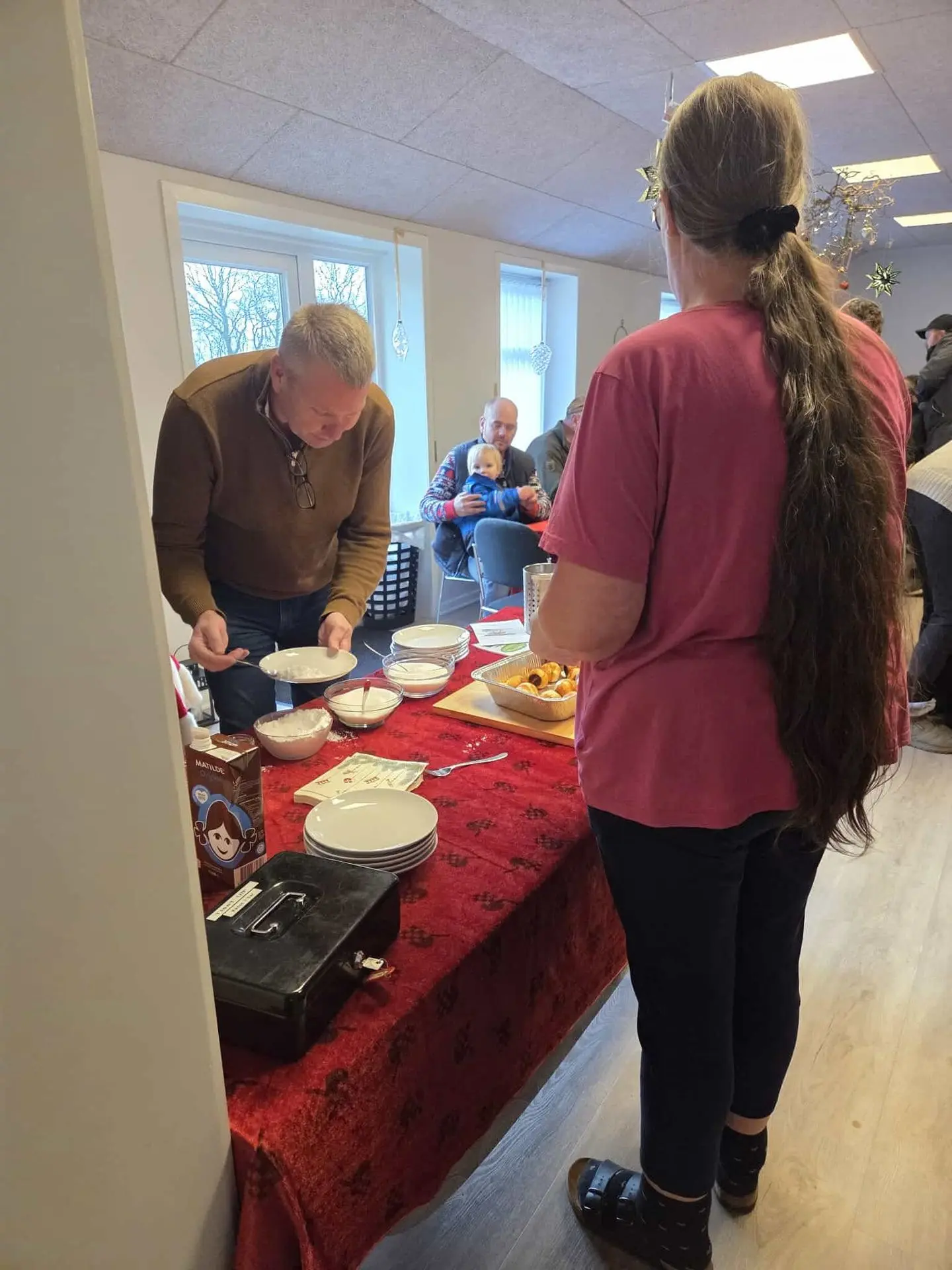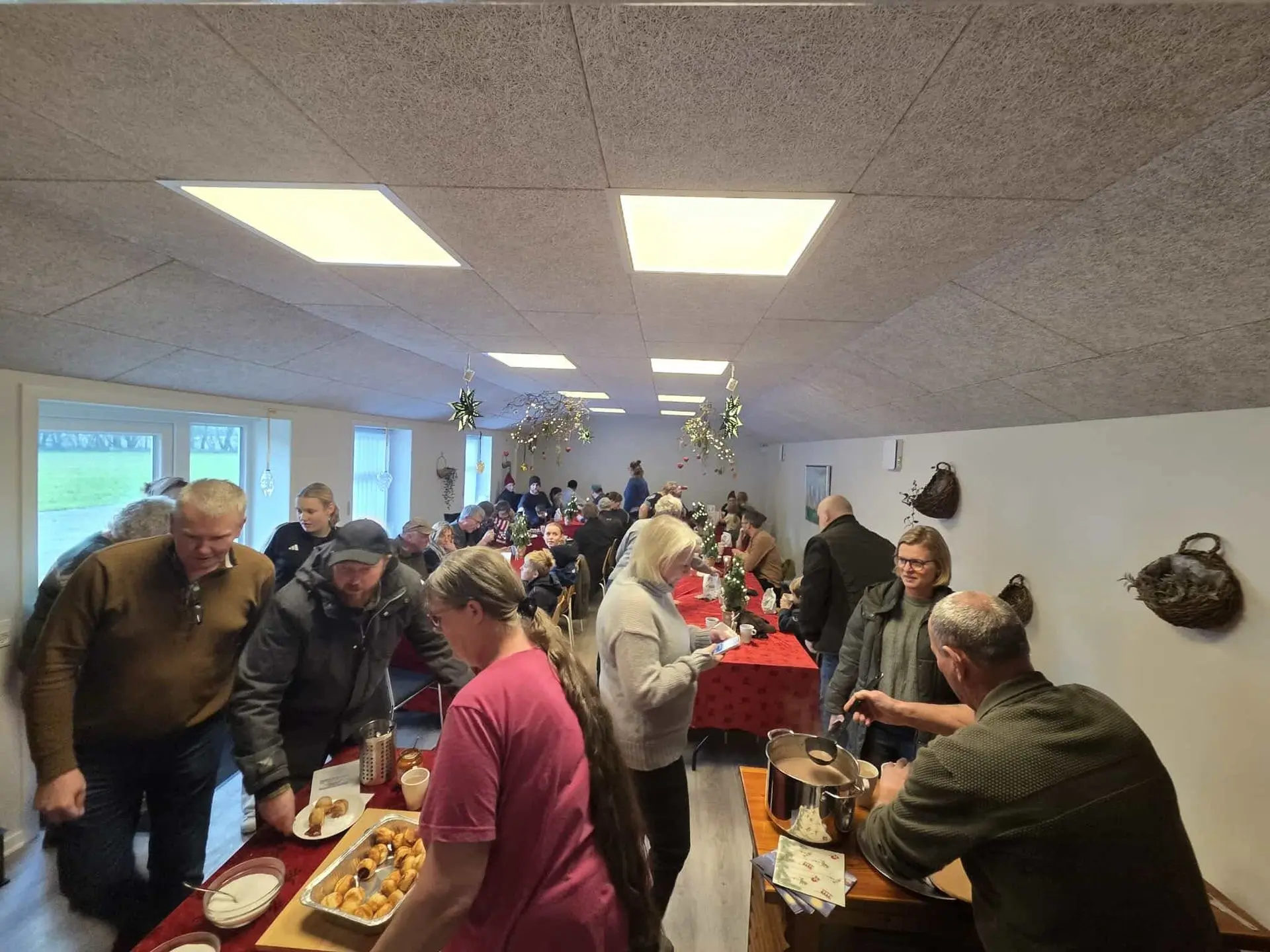 I Fælleshuset satte julemanden sig i sin stol og delte ”bom-poser” ud til alle børnene. Der blev hygget med æbleskiver, gløgg, kaffe og snak, og vi havde en superhyggelig eftermiddag i rigtig dejligt juleselskab.