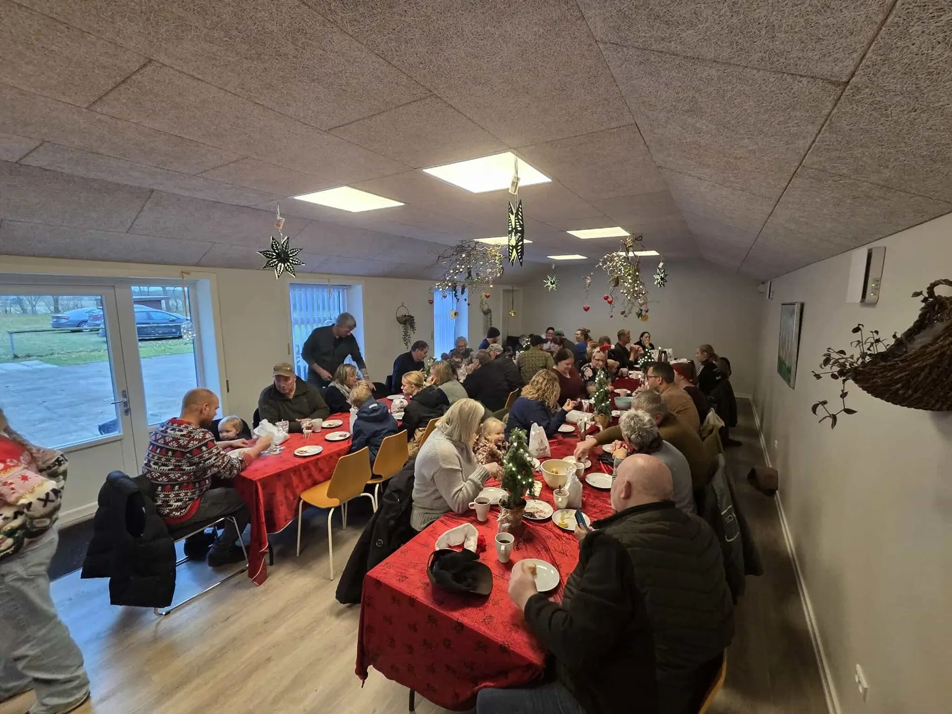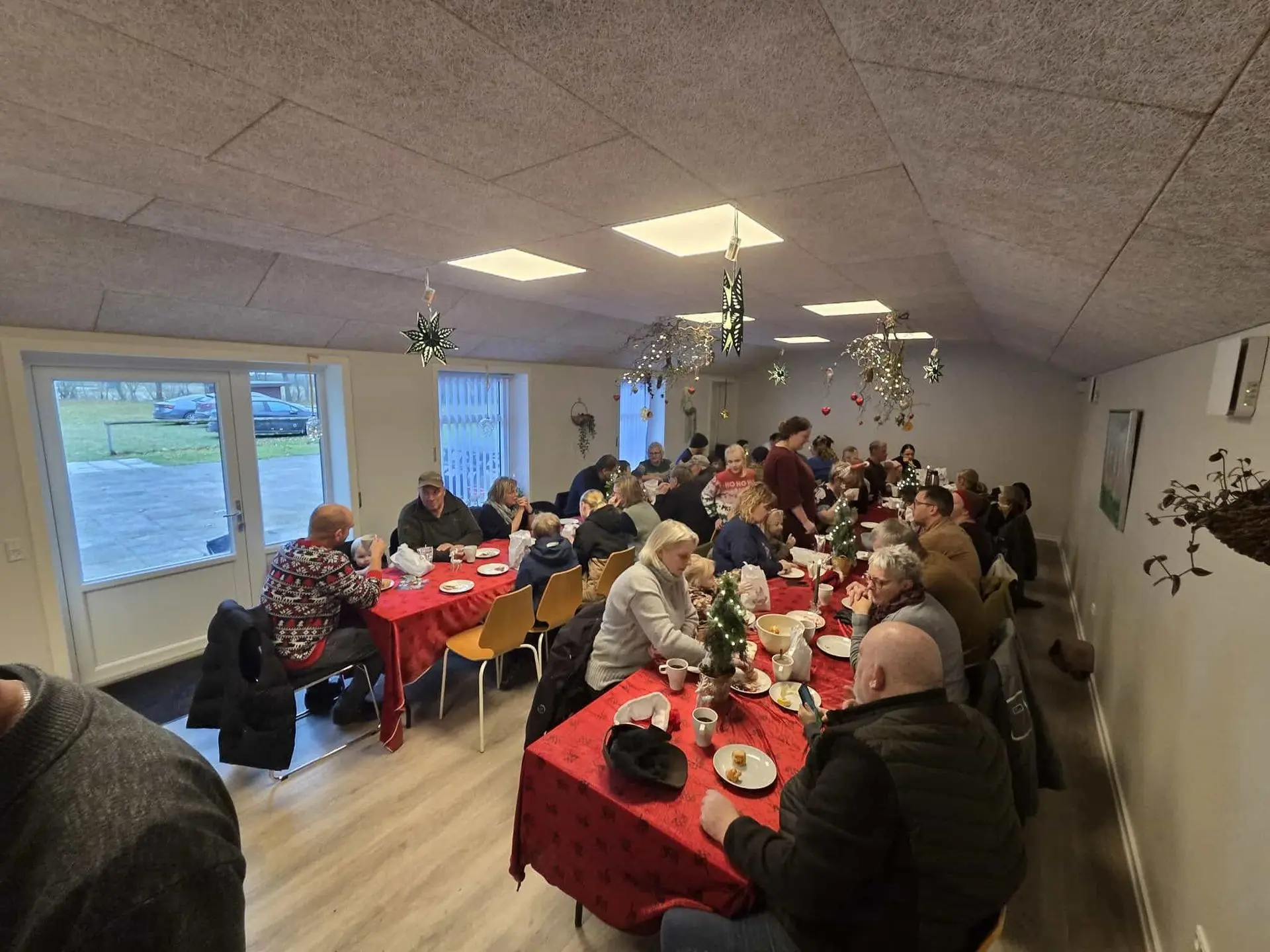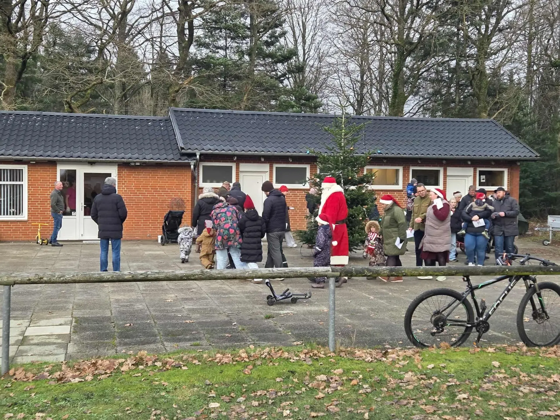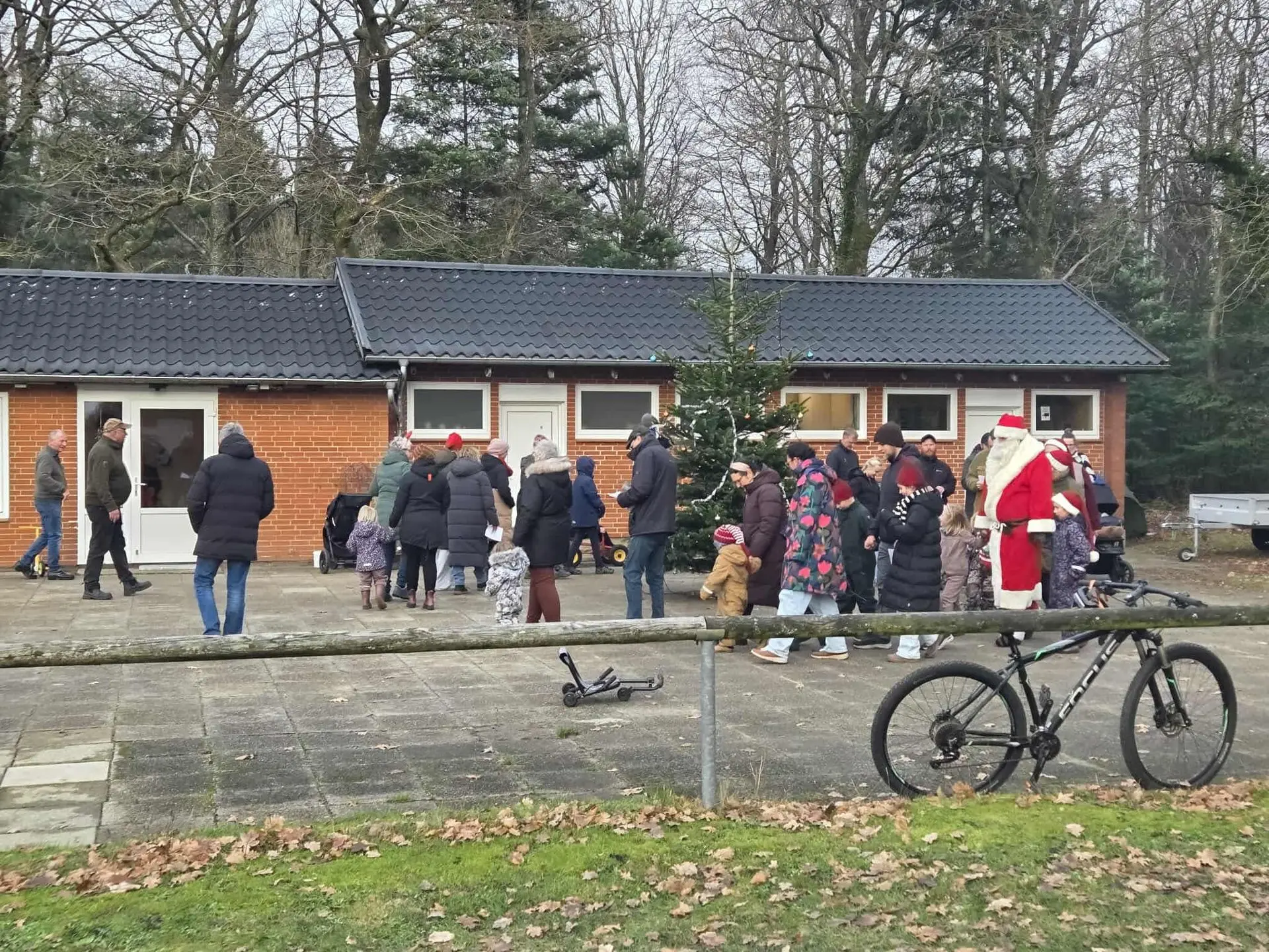 Efter vækningen gik vi i samlet flok ned til Fælleshuset, hvor der blev danset om juletræet og sunget, indtil vi lidt senere gik ind i varmen i Fælleshuset.