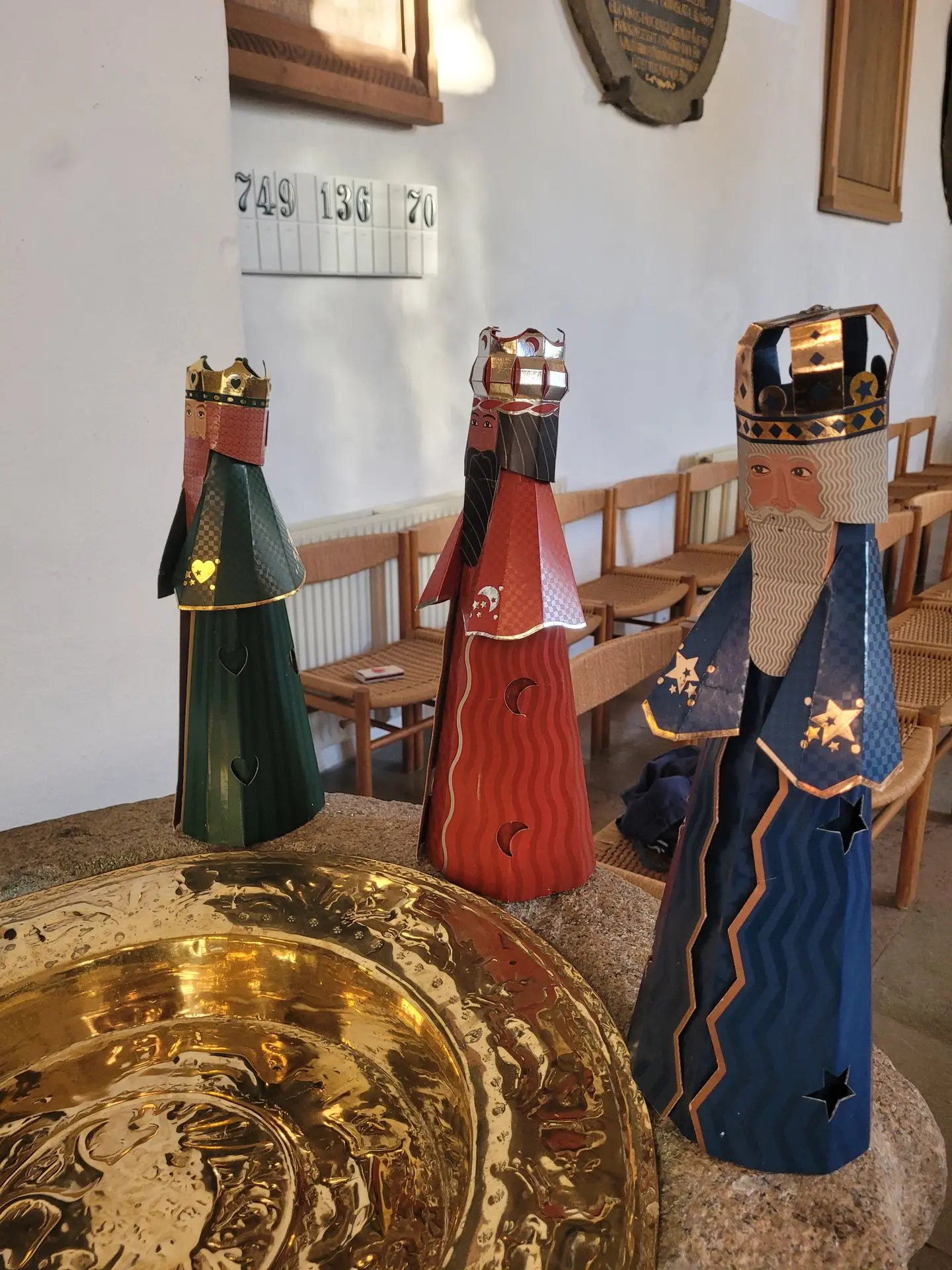 Gudstjenesten var en fortælling om de vise mænd, der gik efter Betlehemsstjernen. Men gang på gang blev de forstyrret. Der var nogen, der skulle have hjælp. Og nogen, der manglede mad. Sådan gælder det om at se op – og ikke kigge ned i sin egen lille navle.