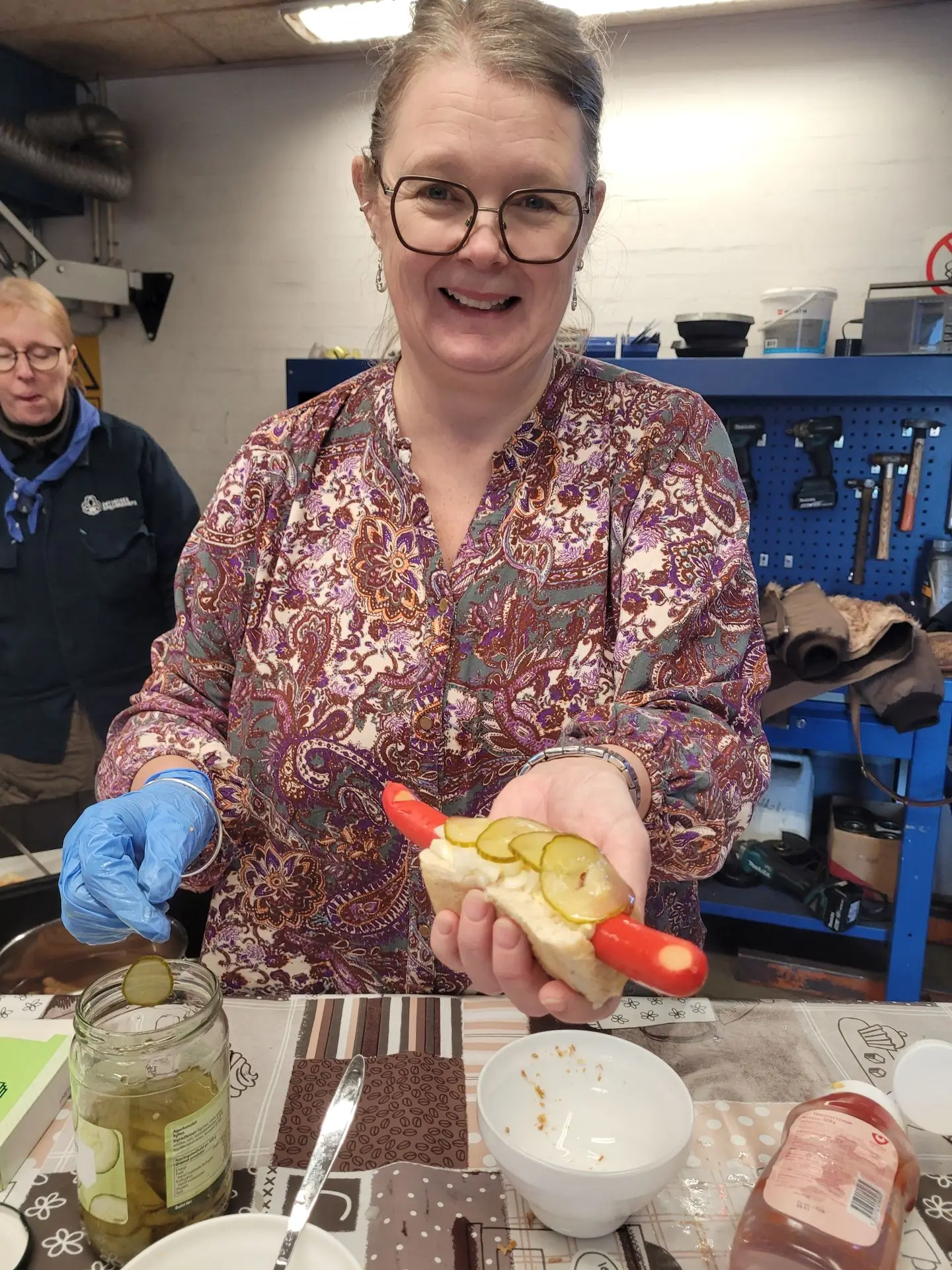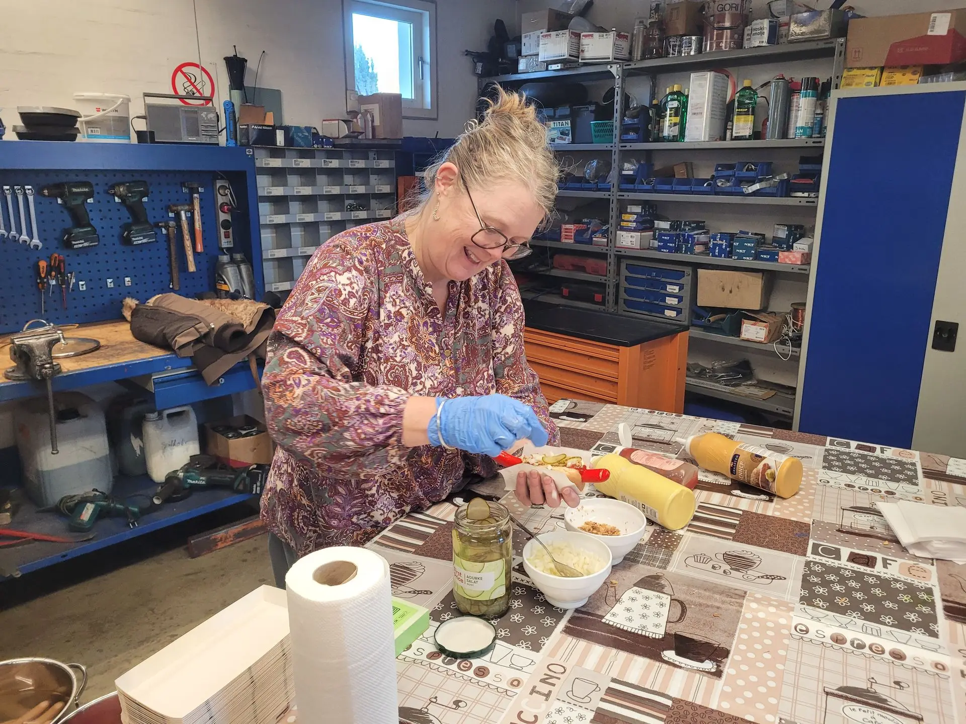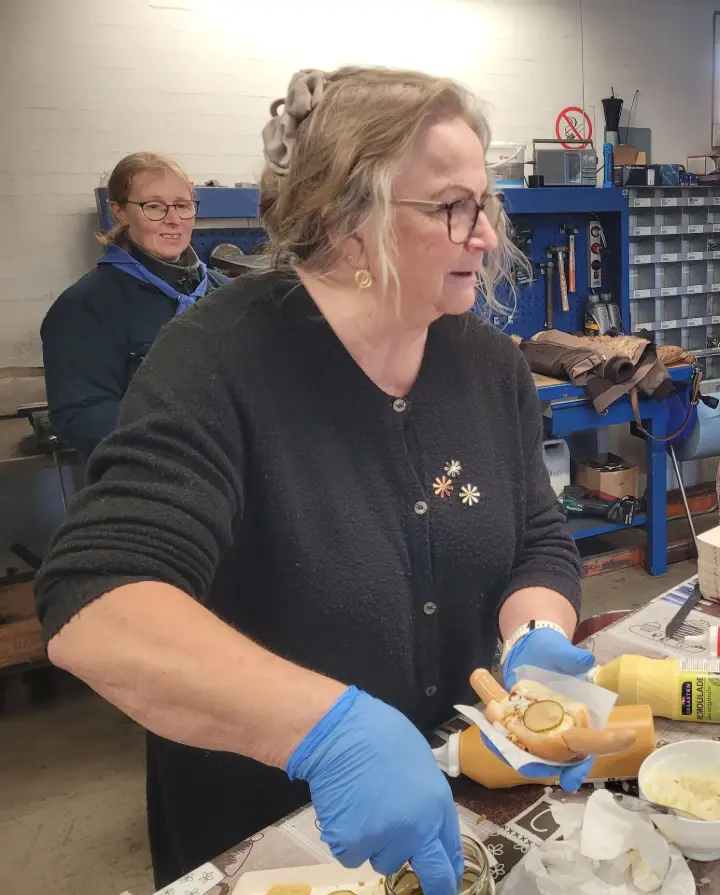 Jeg har været med mange gange nu. Det er blevet en hel tradition, og jeg kan godt lide at hjælpe. Det er også herligt, at der er så mange – både børn og unge og ældre. Og hvem kan ikke lide en god hotdog, fortæller hun, inden hun må i gang med arbejdet igen.
