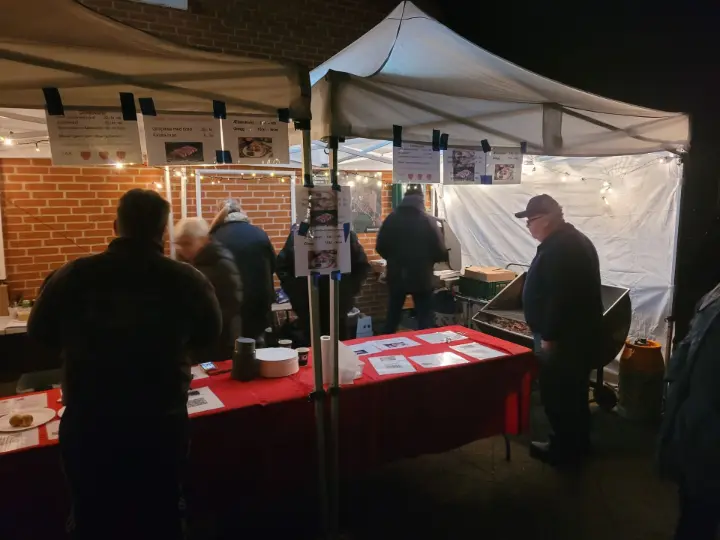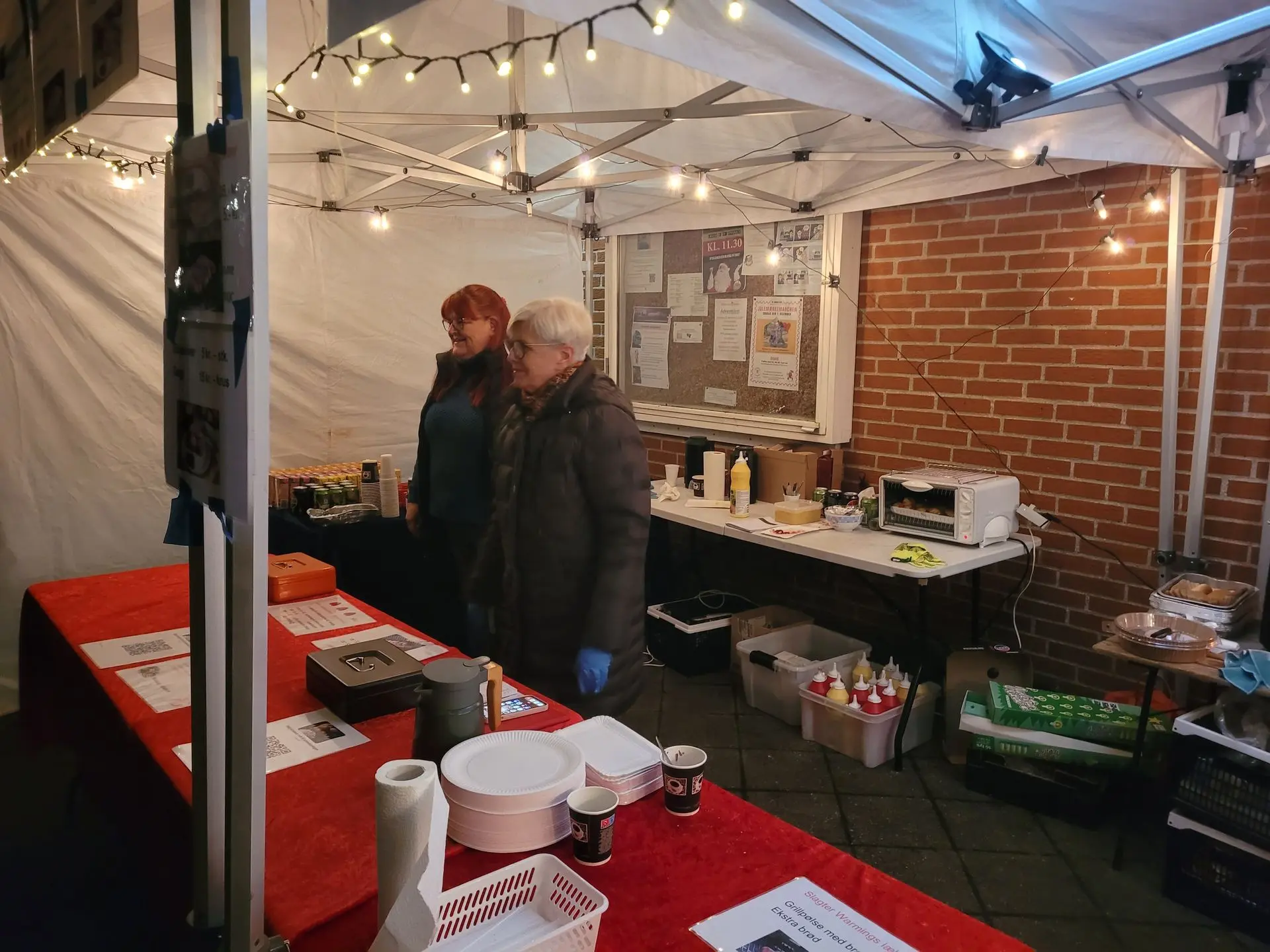 På vej over mod Røde Kors-butikken møder 6510NYT Julebelysningens Venner. De serverer Warmings gode ringridere, æbleskiver og andre lækkerier. Alle pengene går til byens julebelysning, som ikke er billig at drive – og som mange i byen sætter stor pris på.