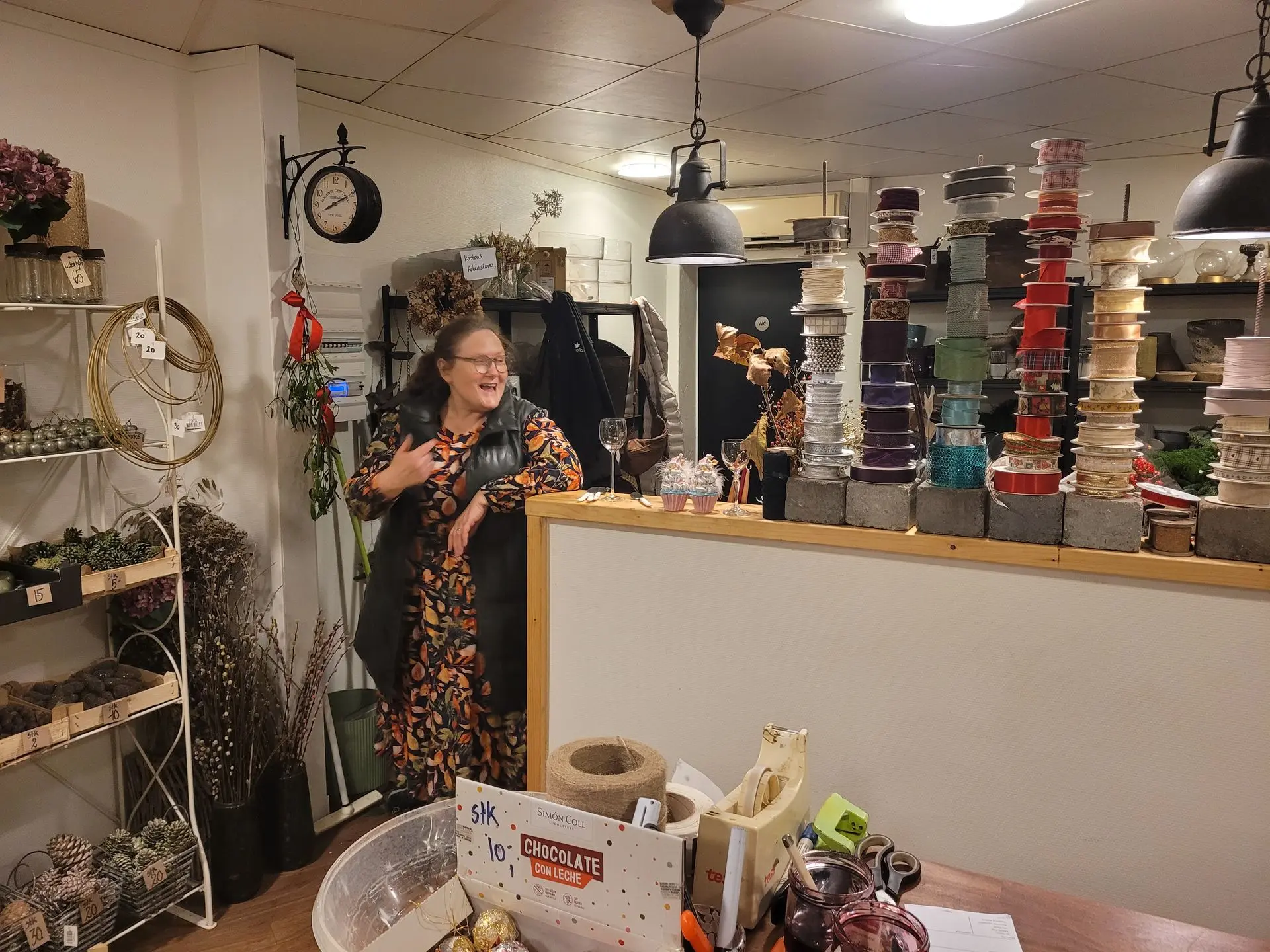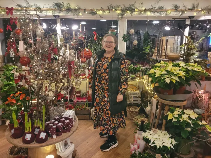 “Det er en hyggelig dag. Der har været mange forbi bare lige for at hilse på. Og vi er rigtig glade for, at så mange har lyst til at se vores julepyntede butik.”