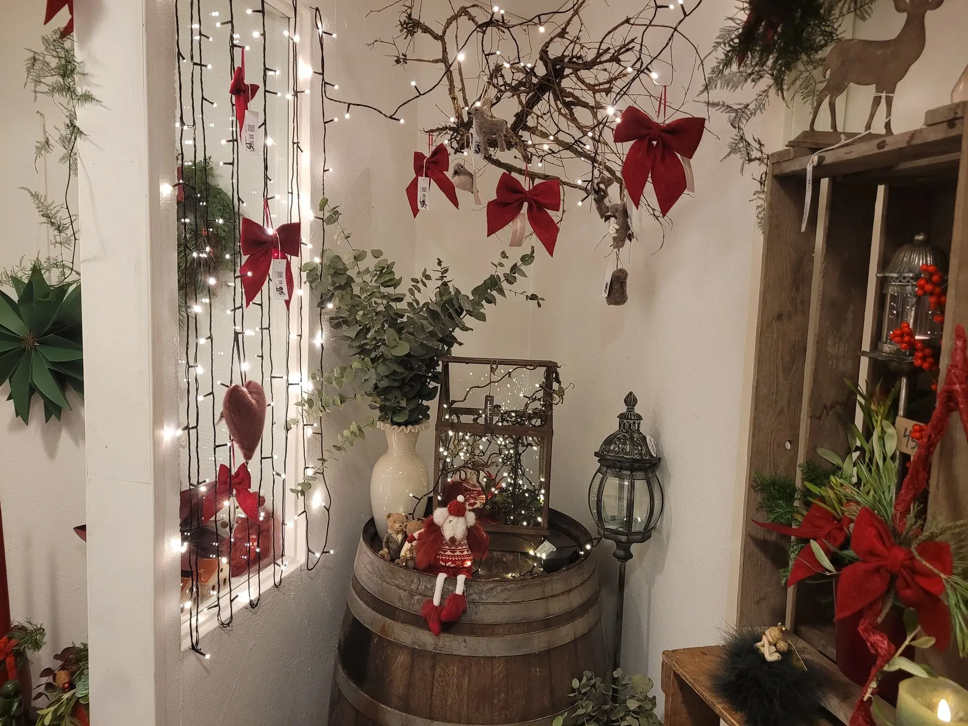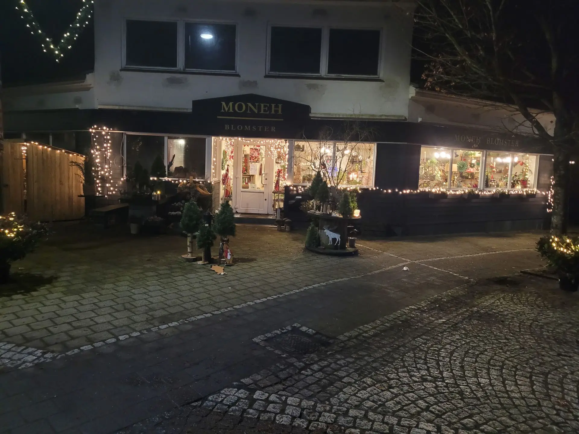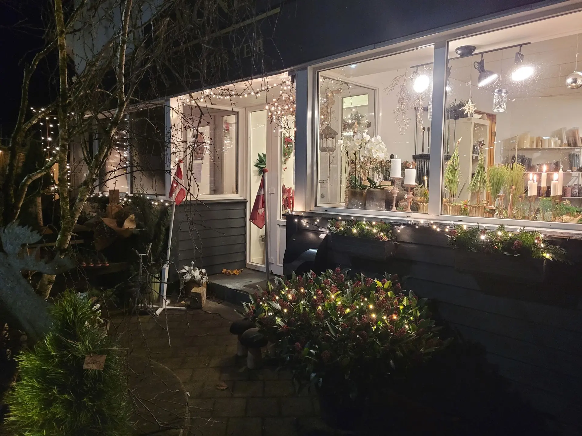 Butikken var virkelig flot – både udenfor i mørket og indenfor. Der er al mulig grund til at kigge ind og købe en julebuket eller en lille adventsgave.