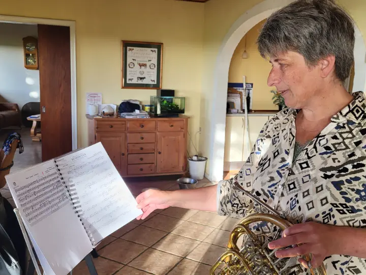 I Vojens Brass Band er det dog Waldhornet, som Miranda mestrer. Bandet har ca. 30 musikere, og spiller koncerter i hele området.