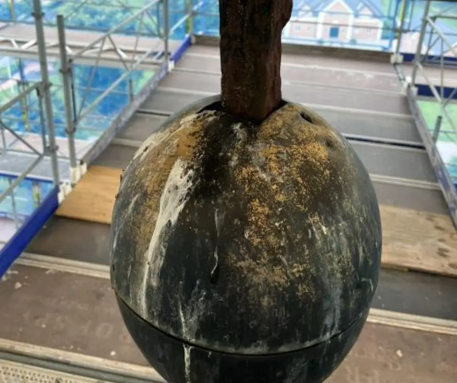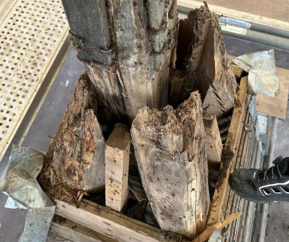 Det er spændende at følge med i. Der dukker detaljer og ting op, som man ikke kan se med det blotte øje nede fra jorden. Da man fjernede taget, dukkede der flere skader op. Der er fundet råd, og noget af murværket skal også have en kærlig hånd.