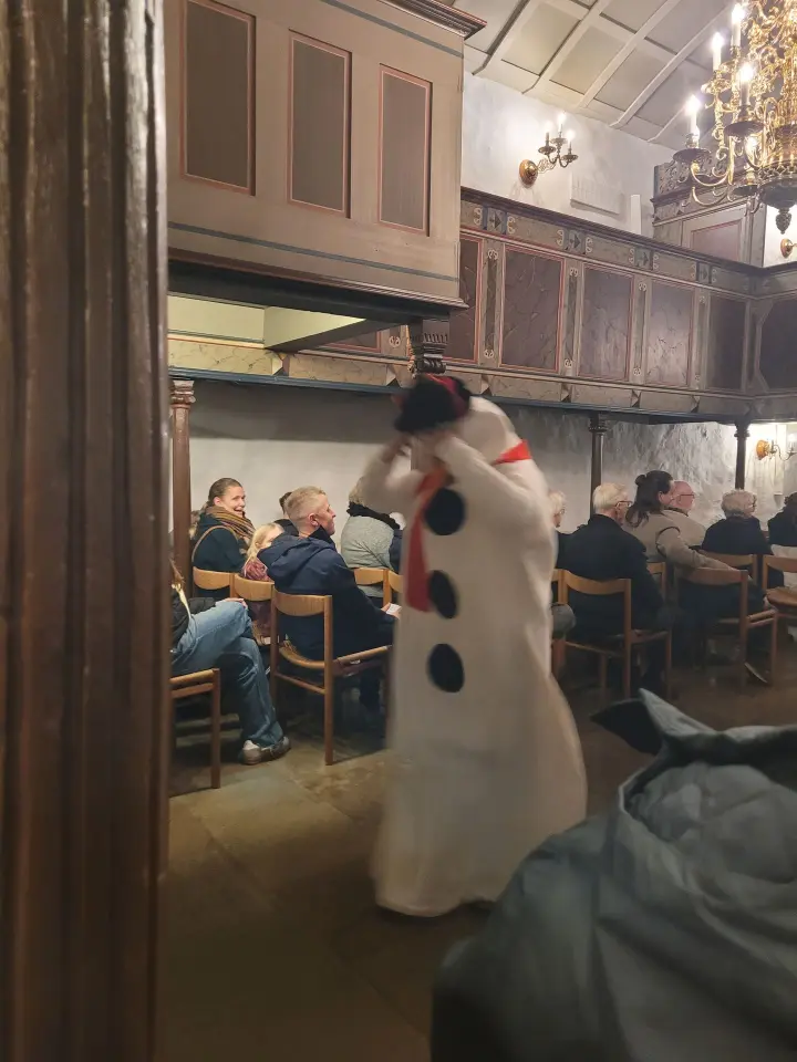 Til sidst sang koret ”The Snowman – Walking in the Air”, en meget smuk sang. Og så kom snemanden ellers ned igennem kirken. Det var en rigtig fin afslutning.