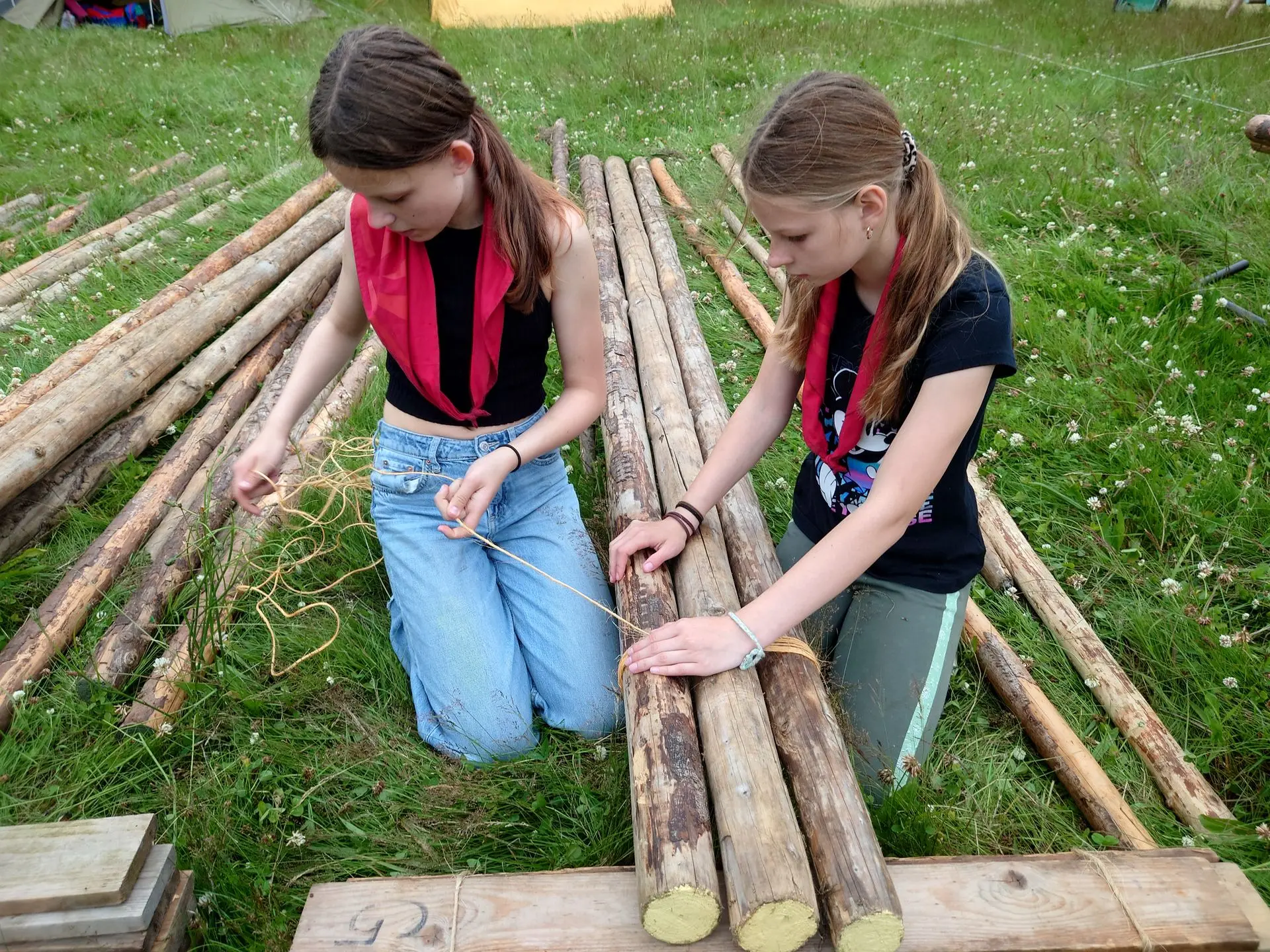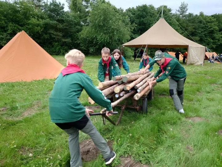 Det første byggeprojekt var et stort spisebord med plads til alle – men det blev lederne, der måtte bygge det færdigt, da spejderne var sendt i seng.