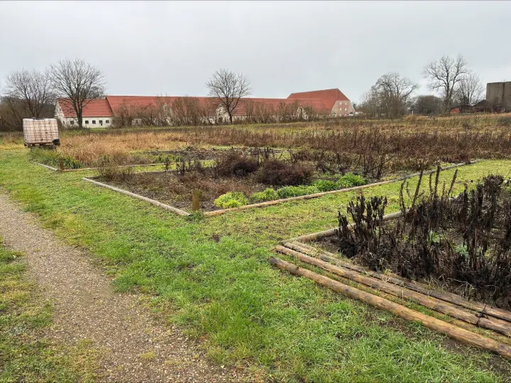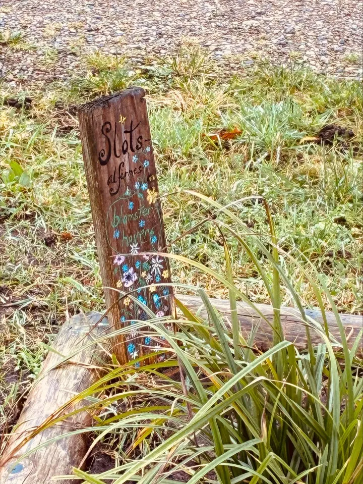 Vi bevæger os med raske skridt - rygsækken tynget af vand, kaffe, vandreboller, frugt og chokolade - over slotsbroen - med små lune og prikkende dråber på kinderne .... snakken går lige så hurtigt og ubesværet, som skridtene tages - vejrfornemmelsen forsvinder let og elegant - og i samme taktfaste rytme drejer vi bag om slotscaféen - ned over slottets køkkenhaver - hvor Bende viser mig "slotsalfernes" blomsterbede - fortæller om den gratis mulighed man har, for her at dyrke et lille stykke jord med blomster eller grøntsager - blot man vil slide i den seje senegræs - gøde jorden med daglig kærlighed og opmærksomhed - måske få et par blomstertips fra slottets nye gartner - så der udfolder sig smukke blomsterbede, som alferne og slotscaféen kan nyde godt af - og andre haver, som står med porer, grønkål, skvalderkål eller det vildeste "vild med vilje".