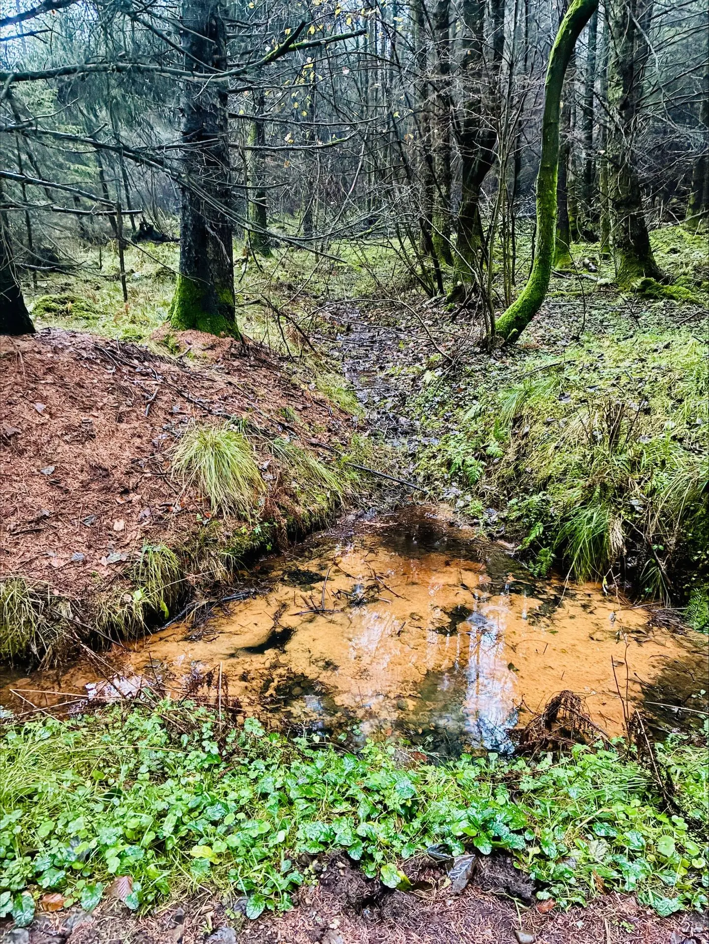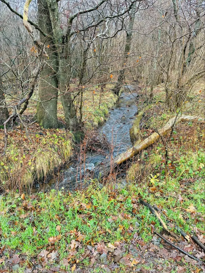 Markvejen fører os videre - rundt om denne Billeslund - Bende stopper op - beder mig lytte - til bænkens glade og strømmende melodi - det risler og klukker som var det en forårsvarsling - her på en dag midt i december .... meget ubegribeligt og alligevel så livskraftigt og positivt - vi lader lyden bundfælde i os - enige om at sådan en rislen gør noget godt for sjælen og roen ...