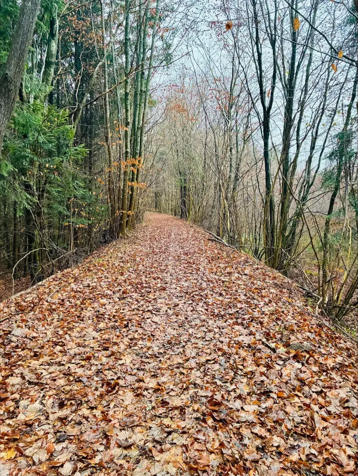 Med masser af ler og vand om støvlerne - svupper vi ud ad den gamle og nedlagte Kleinbahn sti - med det smukke, brændende og rødglødende løvfald under os - og med historiens vingesus bag os ... bevæger vi os imod Hindballes lille røde skovhus. Bende fortæller om den kendetegnende røde farve - signalerede tidligere om et tilhørsforhold til slottets ejendom - og hvor man under krigen lod skorstenene male hvide - måske var det omvendt - men vel som et skjult statement - for et nationalt tilhørsforhold - her i grænselandet .....